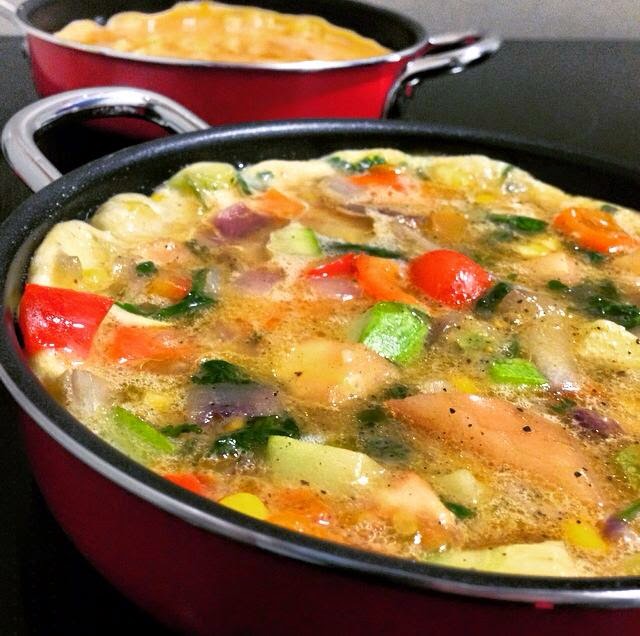 לטרוף 5 ביצים להוסיף חצי כוס מים מהול בכפית קורנפלור לטרוף הייטב להוסיף הירקות המטוגנים לערבב ולהחזיר לטיגון במחבת לכסות המחבת על אש בינונית ..פריטטה תירס ביצים מבולבלות עם תירס ולהוסיף גבינות פרמזן קצקבל או כל גבינה אהובה